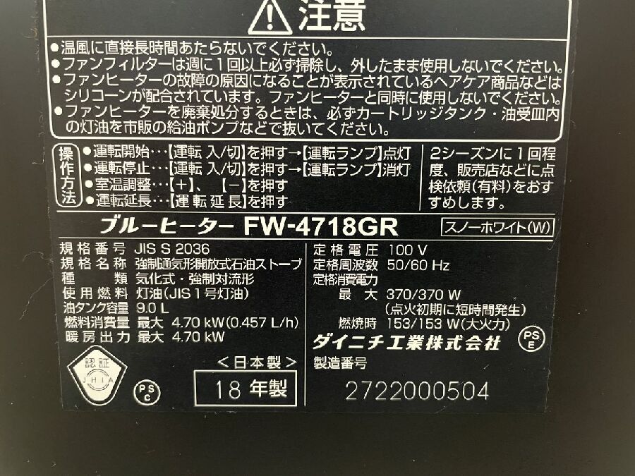 ダイニチ石油ファンヒーター「FW-4718GR」