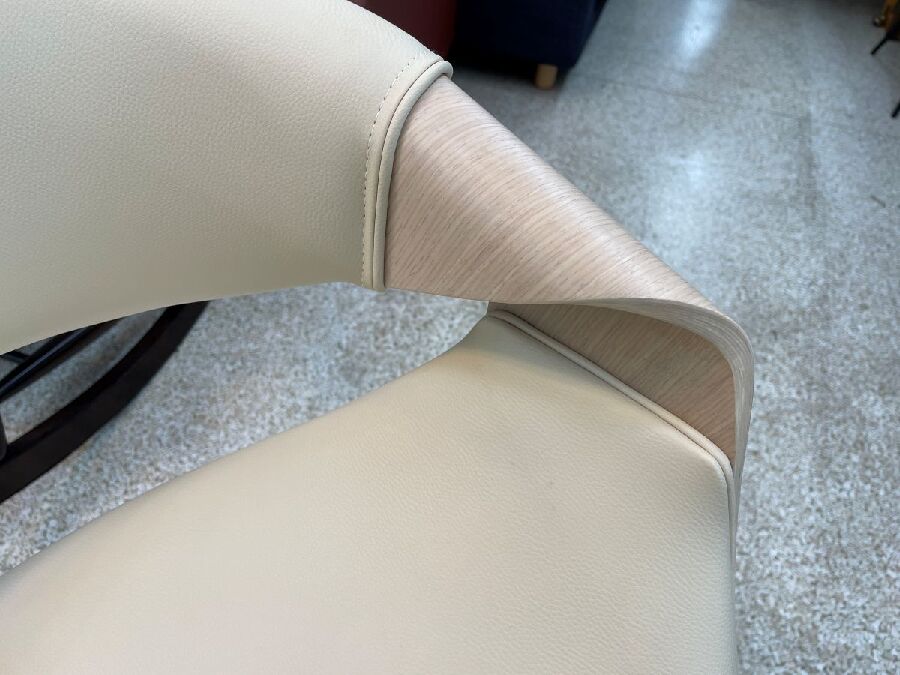 肘部分に特徴的な曲げ木を使用した美しいフォルムのバーチェアです。
