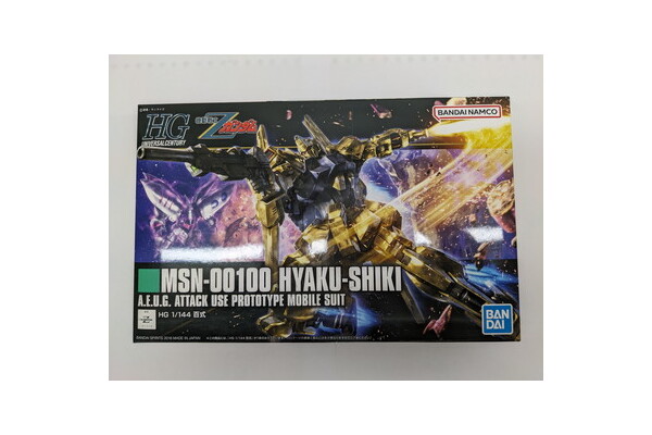 ガンプラ「百式」は、1985年放送のテレビアニメ『機動戦士Ζガンダム』に登場するモビルスーツ(MS)で、金色に輝く特徴的な機体です。開発主任であるM・ナガノ博士が「百年保つMS」という願いを込めて名付けました。ガンプラとしては、アニメ放送と同じ1985年から展開されております。