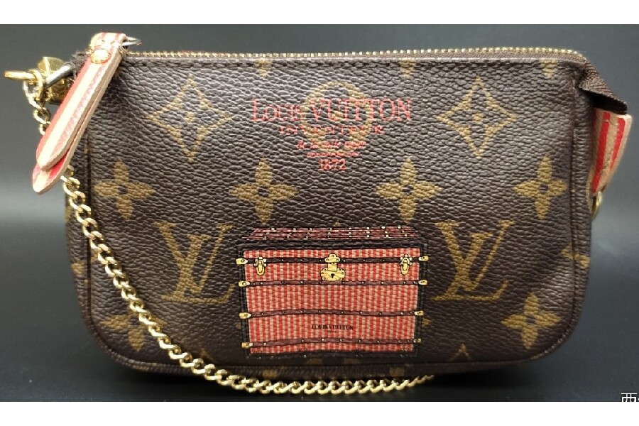 定番のモノグラム地にトランクが描かれており、ワンポイントが光る一品。