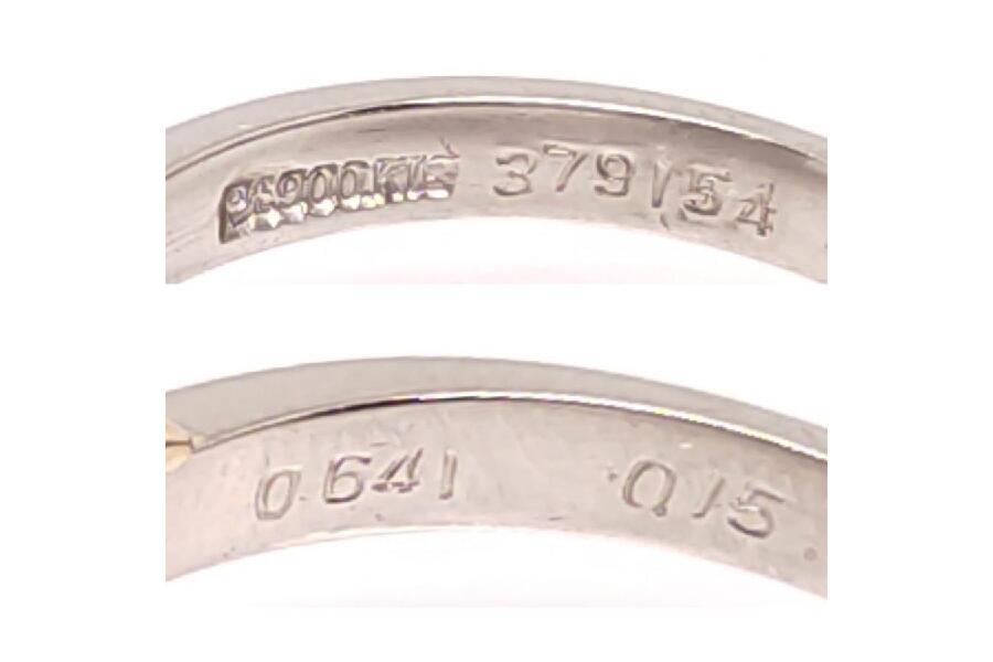このリングは、D:0.641ctとメレD:0.15ctのストーンがセットされており、その輝きはまさに目を引くものがあります。