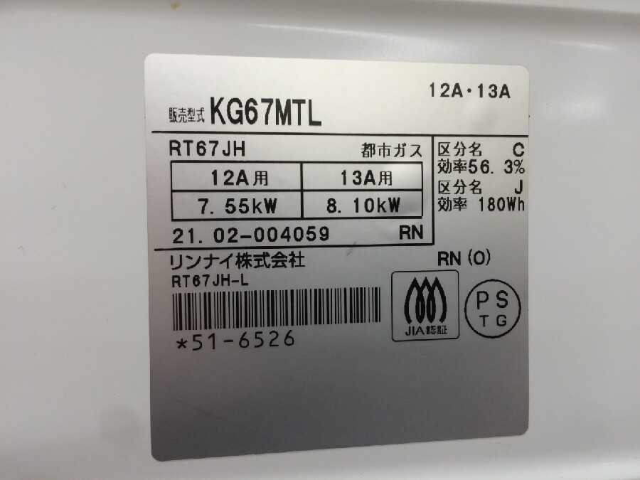 Rinnai KG67MTL 都市ガステーブル 入荷しました!!
