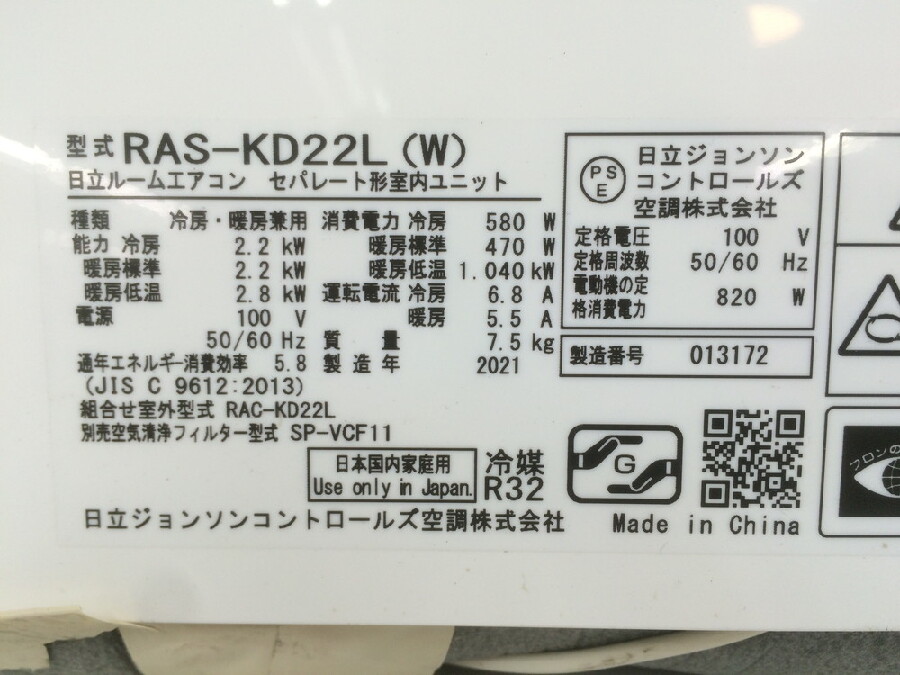 日立壁掛エアコン RAS-KD22L