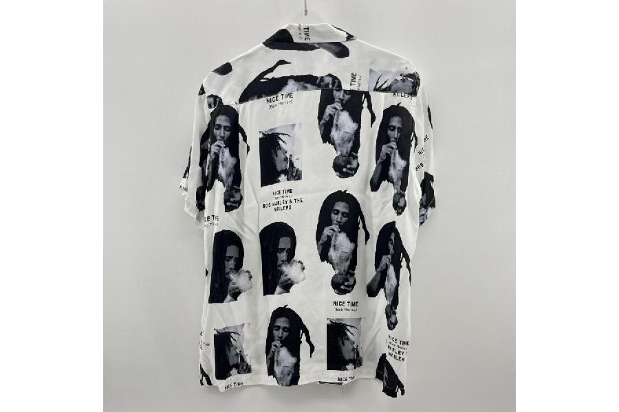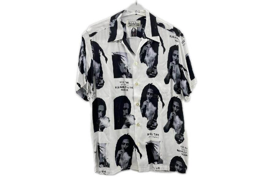 今回は、個性的で魅力的なワコマリアのメンズアロハシャツをご紹介します。ボブマーリーをあしらったユニークな柄と、ホワイトカラーが印象的なこの一着は、着こなしのアクセントとしておすすめです。