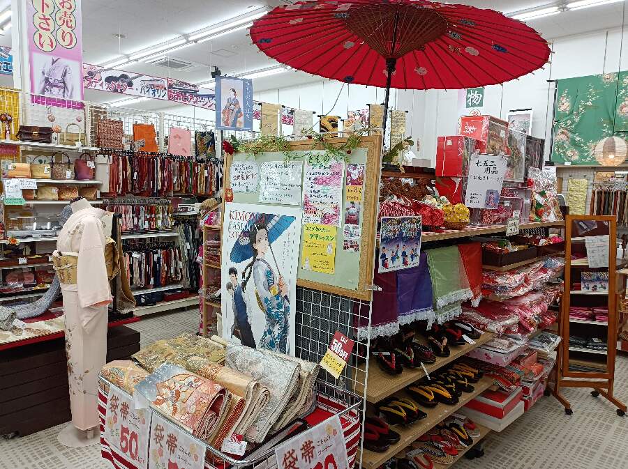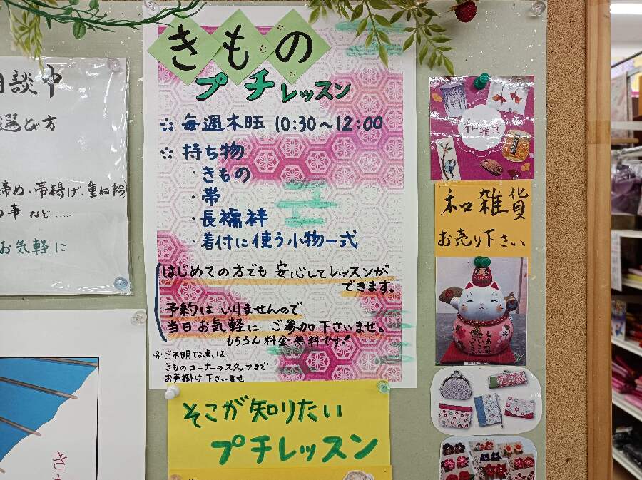 本日は宮竹店の着物コーナーとプチレッスン(着付け教室)