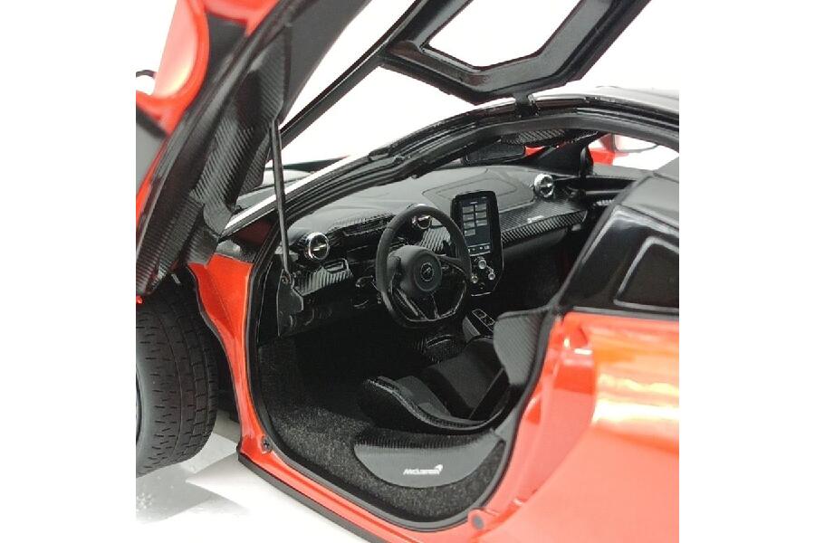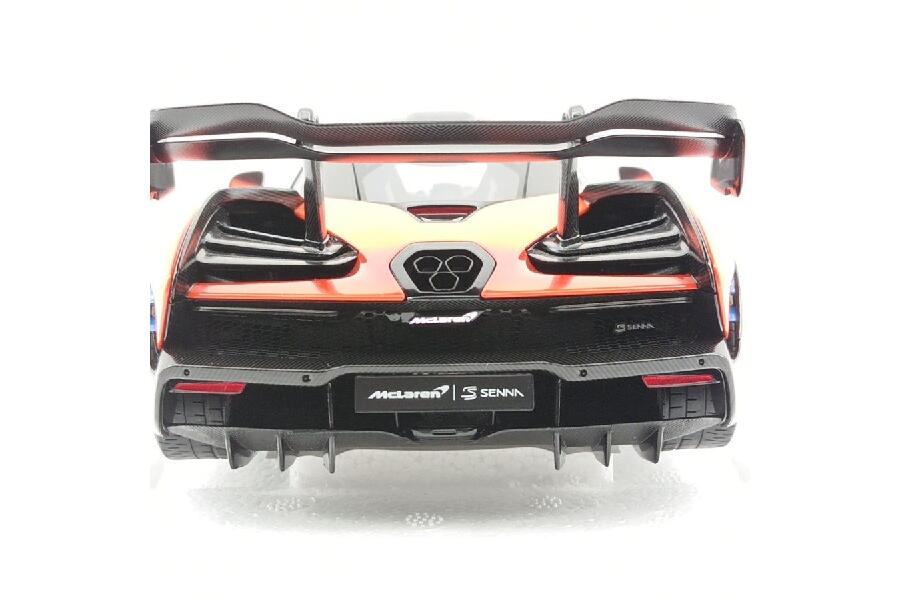 このマクラーレン セナのモデルは、鮮やかなオレンジカラーで、実車のアグレッシブなスタイルを見事に表現しています。