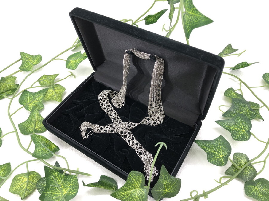このネックレスは46.4gというしっかりとした重さがあり、存在感があります。100cmの長さは、シンプルに一重で着けるだけでなく、二重にして短くするなど、さまざまなスタイルで楽しむことができます。幅1cmのデザインは、華やかさを引き立てつつも、上品さを失わない絶妙なバランスです。