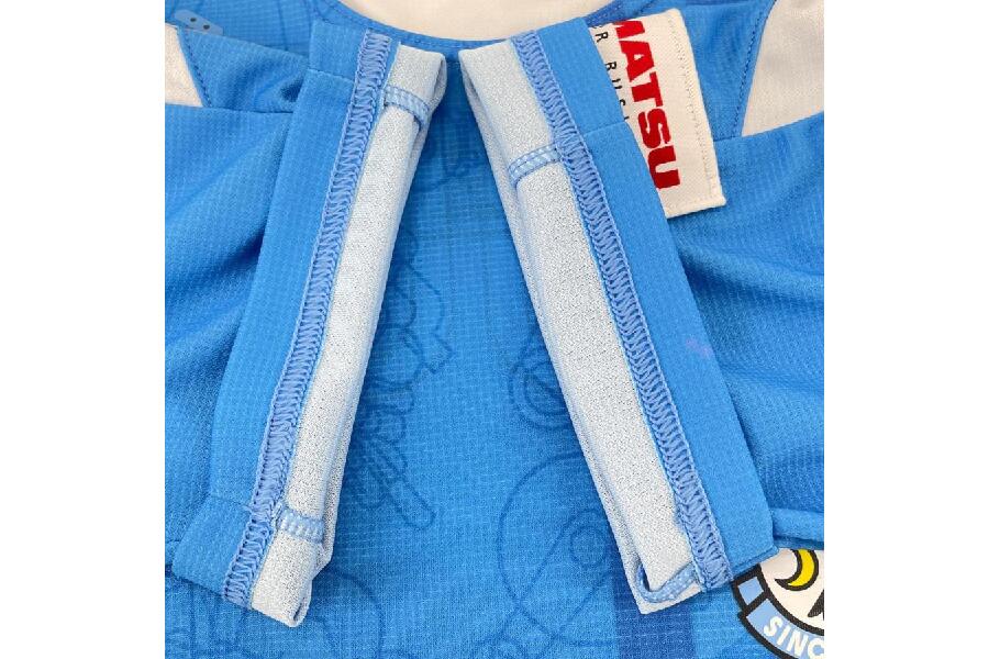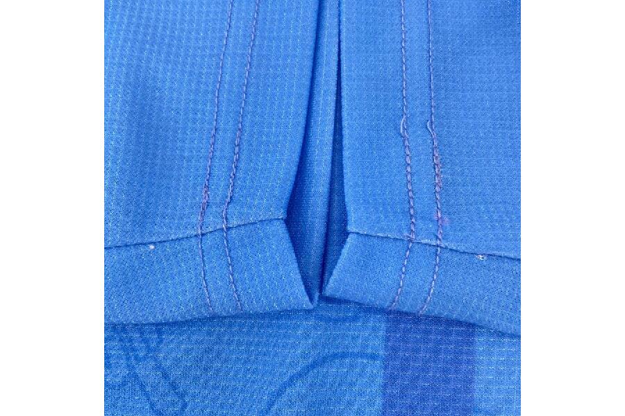・「スカイブルーの鮮やかな色合いが、着るだけで気分を明るくしてくれます。」