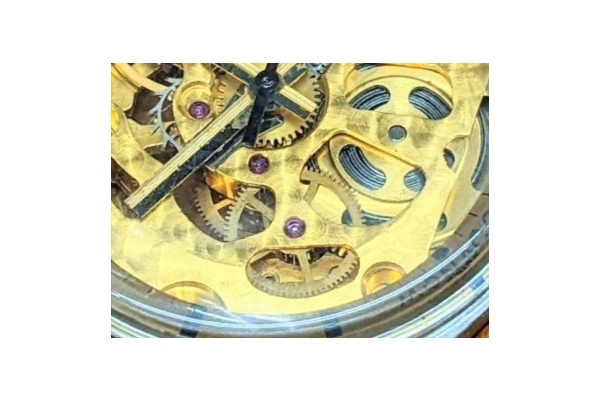 1960年代のスケルトンウォッチです。クォーツ式の腕時計がまだ台頭する前で、時計としては自動巻きの腕時計が主流の時代でした。表面だけでなく裏面もスケルトンの美しい腕時計です。