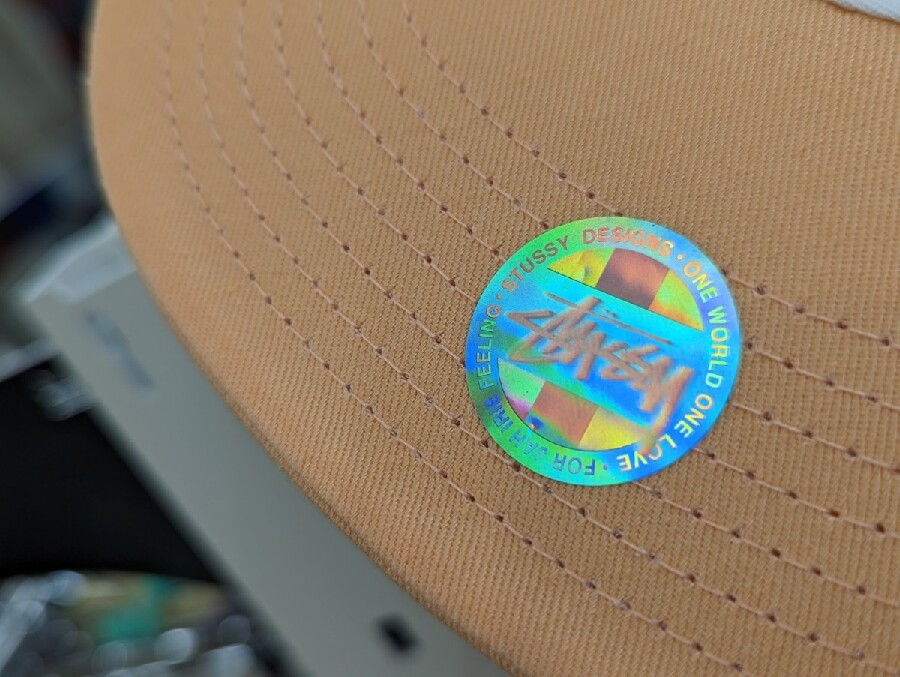 鍔の後ろにはホログラムのシールが貼ってあります。ストリートスタイル的には貼ったまま使いたいですね。