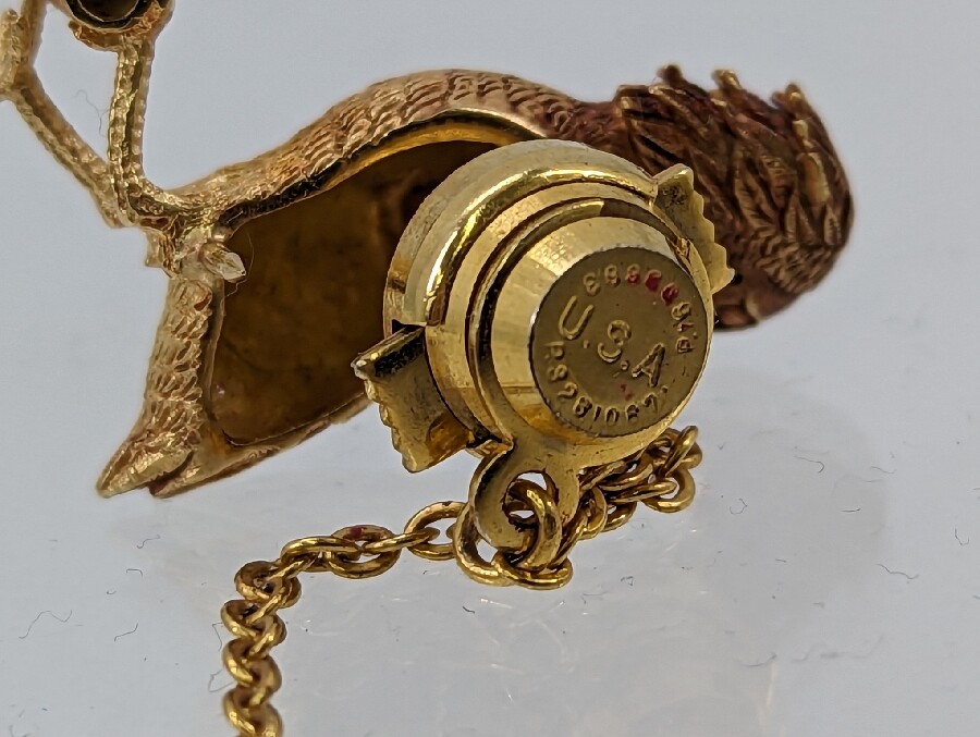 今回のタイタックですが、茶褐色に変色が見られますが、18金のお品です。