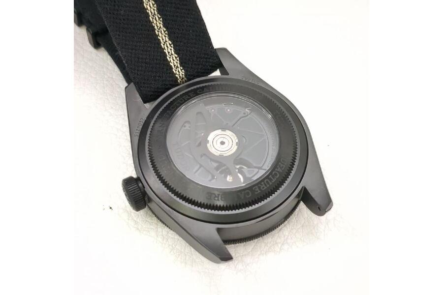 文字盤はブラックで、TUDORの時計らしいクラシックで洗練されたデザインが魅力です