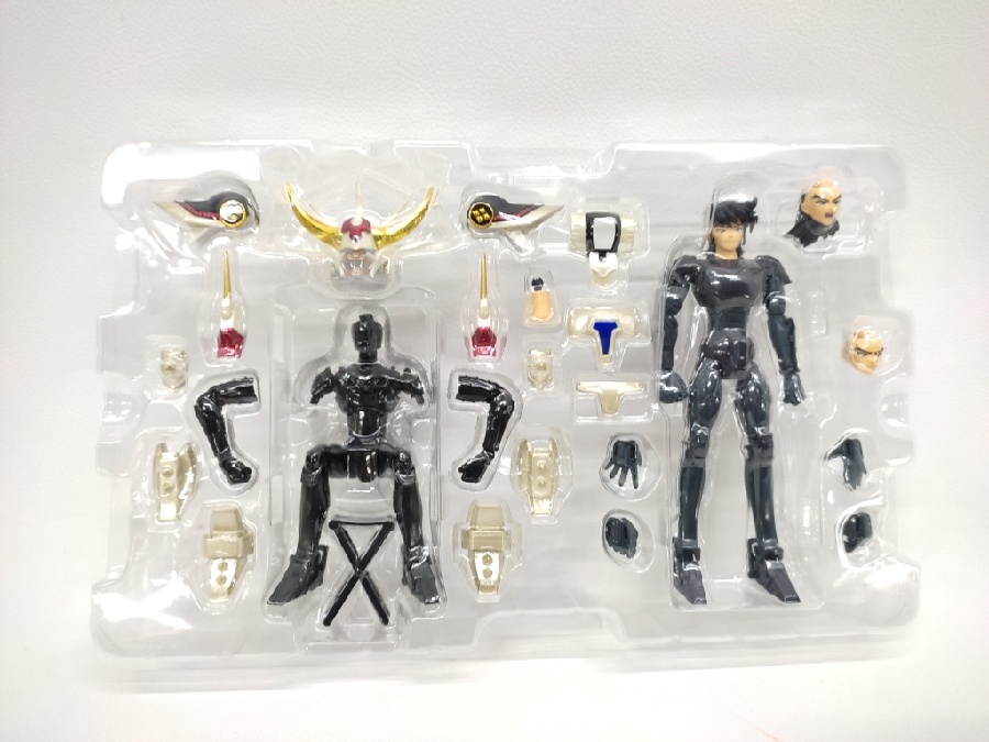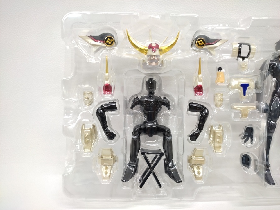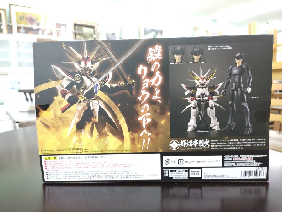 パーツも完品で劇中同様に光り輝く部分は銀色メッキ&金色メッキを使用し暗く重厚なカラーリング、白い鎧部分は発色が良いメタリックホワイトにオレンジパールを薄くコーティングすることで炎の照り返しをイメージした作りとなっています。