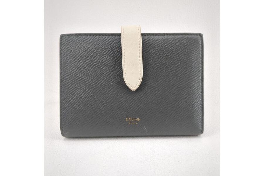 CELINE セリーヌ 2つ折り財布 スモールストラップ エッセンシャル バイカラーグレイ グレー入荷しました♪