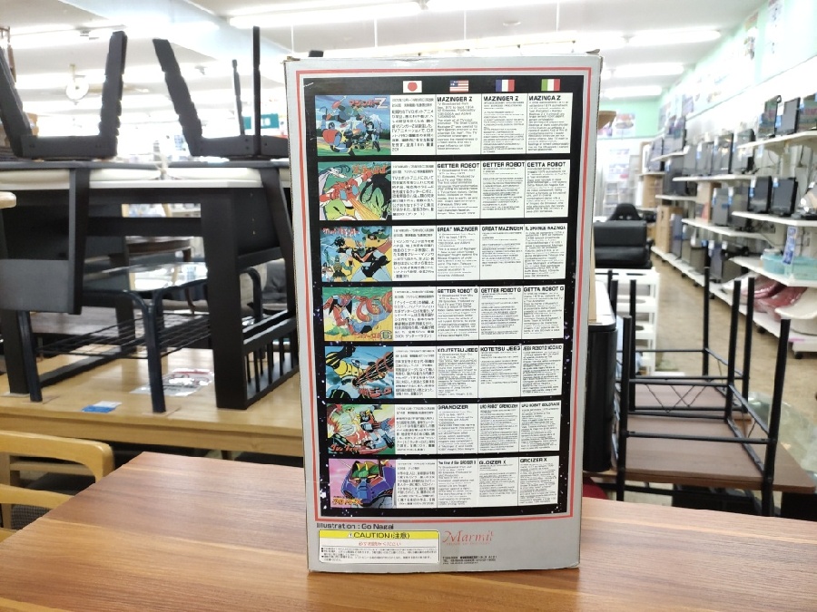 箱の裏にはマジンガーZ、ゲッターロボなど人気のロボットアニメの歴史がびっしりと書いてあります!