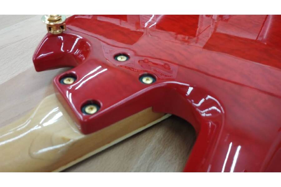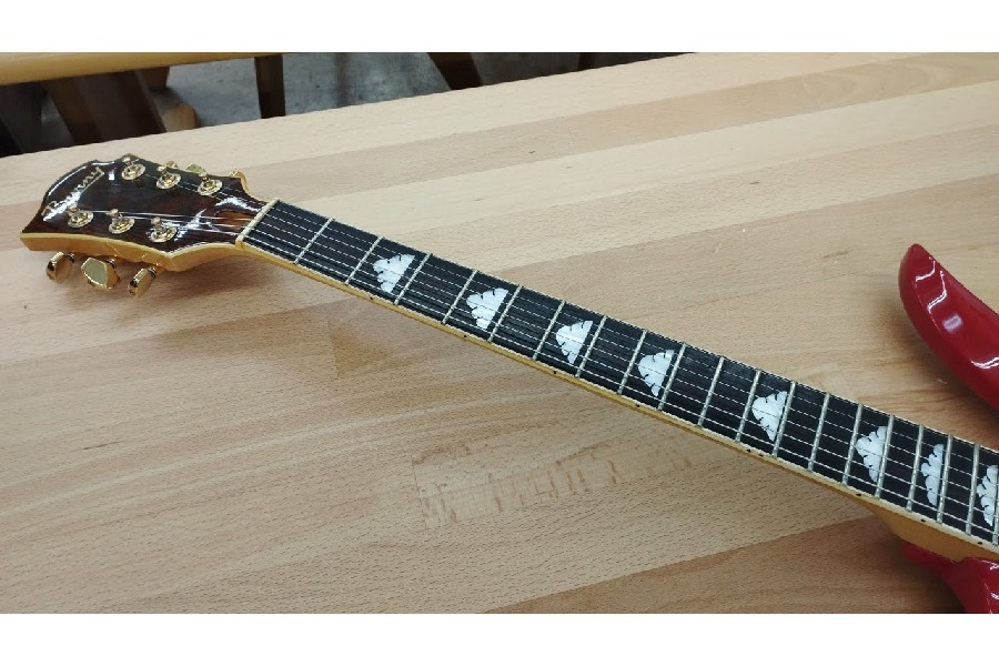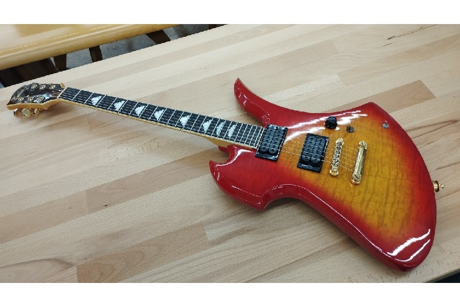 1990年代に発売されたhideモデル。鮮やかなチェリーサンバーストボディのMG-85Xです。