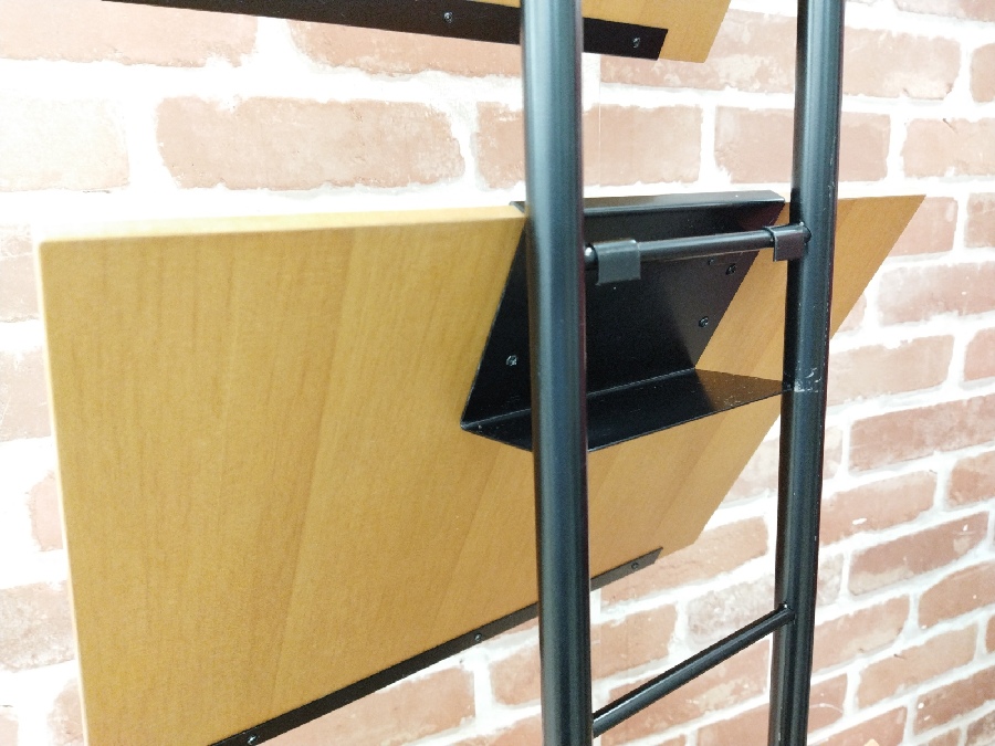 パンフレットを置けるような棚が4段ついており、部屋の中でのブックラックとしても、