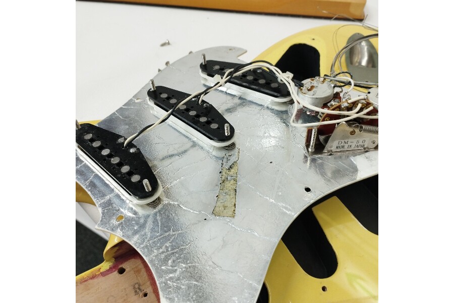 外してみるとアッセンブリーごと交換されているようです。音はノーマルなシングルコイルの音です。