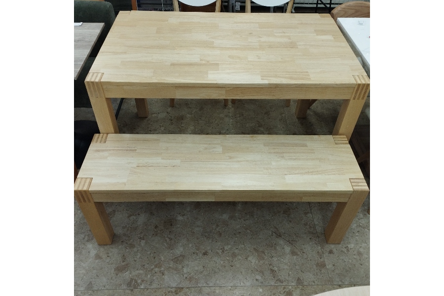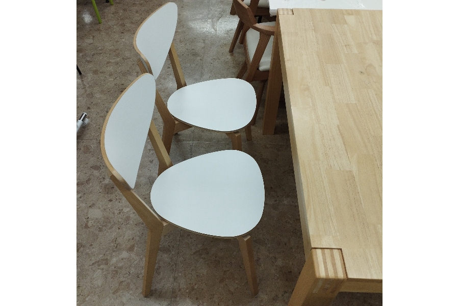 イスも同じ無垢材を使用しておりゴムノキ無垢材, クリアラッカーを上塗りしています