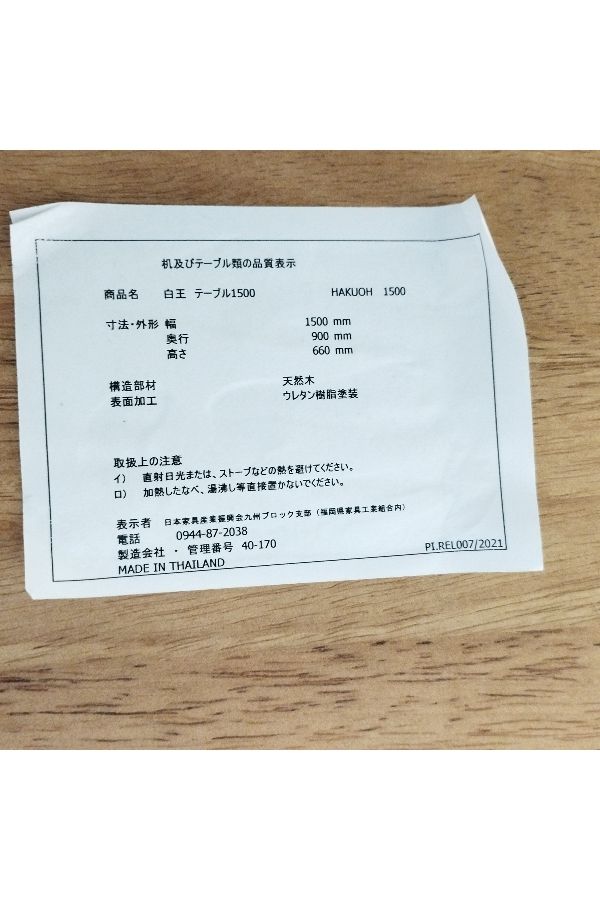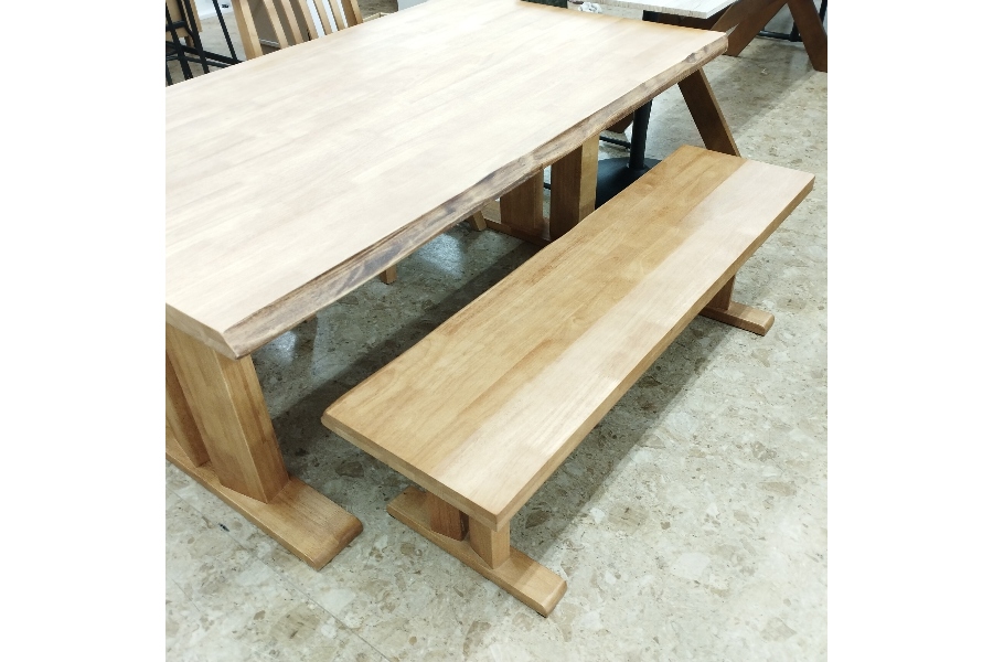 テーブル天板は40mm厚のラバーウッド無垢材仕様となっています