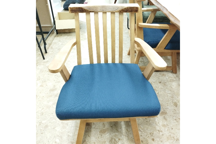 チェアと背付きベンチのファブリックは木部と調和した色合いに仕上げになっています