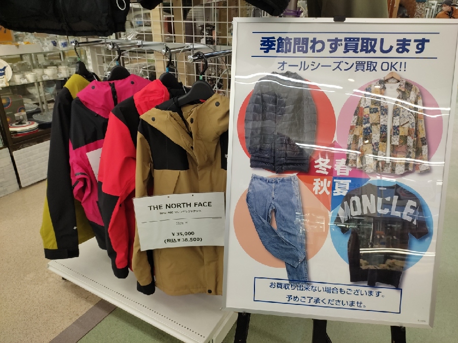 また、メンズの古着、お洋服はブランド問わず、季節問わず通年買取強化しておりますので、衣替えなどで着なくなってしまったお洋服はお気軽にお持ち込みください。
