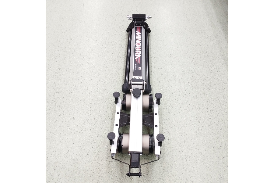 設置サイズ幅 790mm、高さ:450mm、奥行:1,230mm~1,470mm、製品重量:6.1Kg。組立不要でホイールベースのセッティングのみで