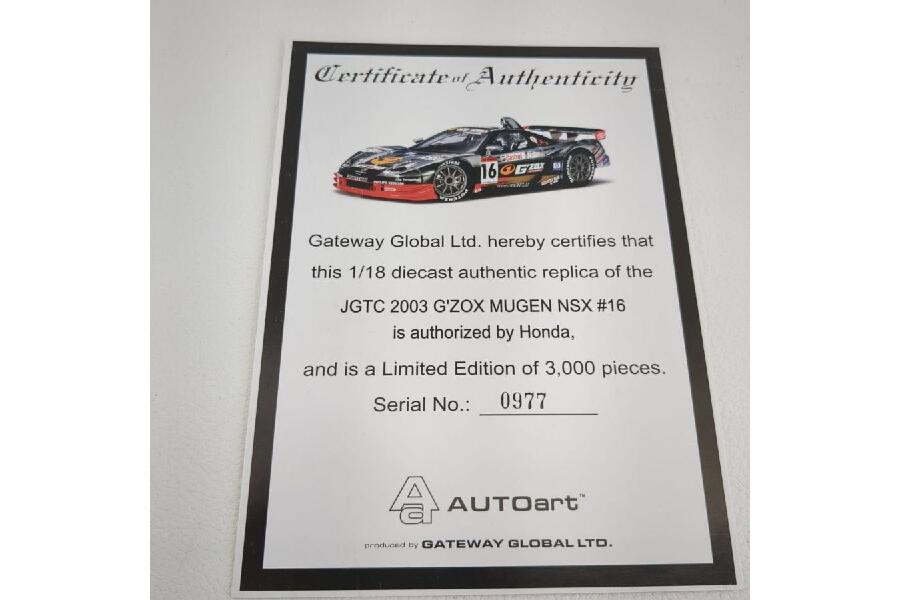 今回ご紹介するのは、そのAUTOartからリリースされた「1/18 ホンダ NSX 2003 JGTC #16 G’ZOX シルバーメッキver.」です。