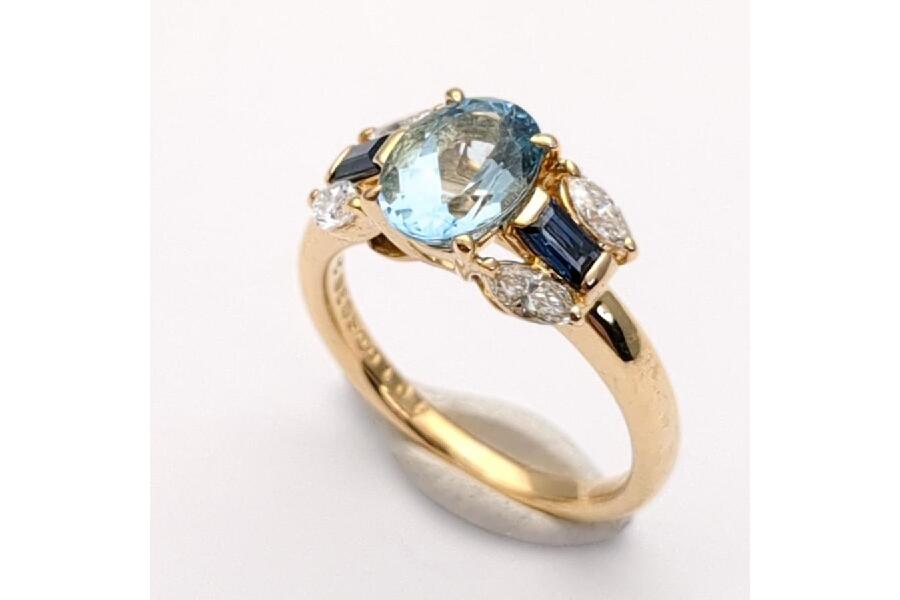 今回ご紹介するのは、アクアマリンをメインストーンに据えた、上品で洗練されたデザインのK18リングです。
