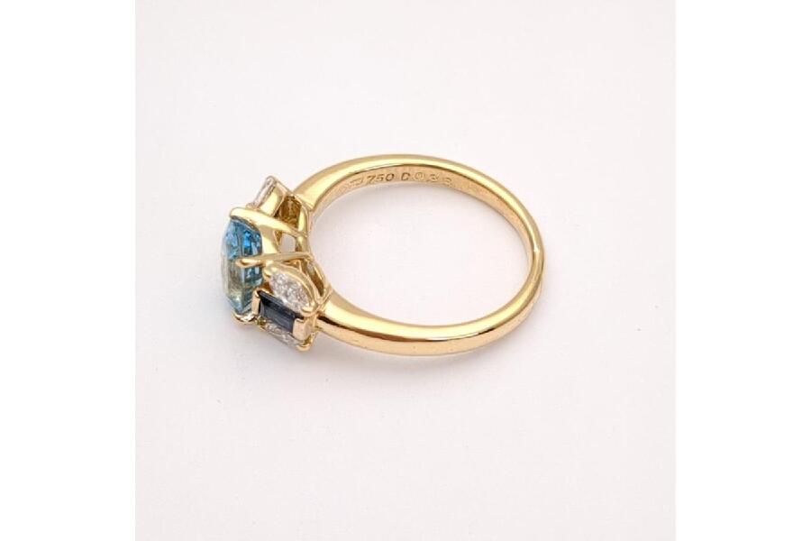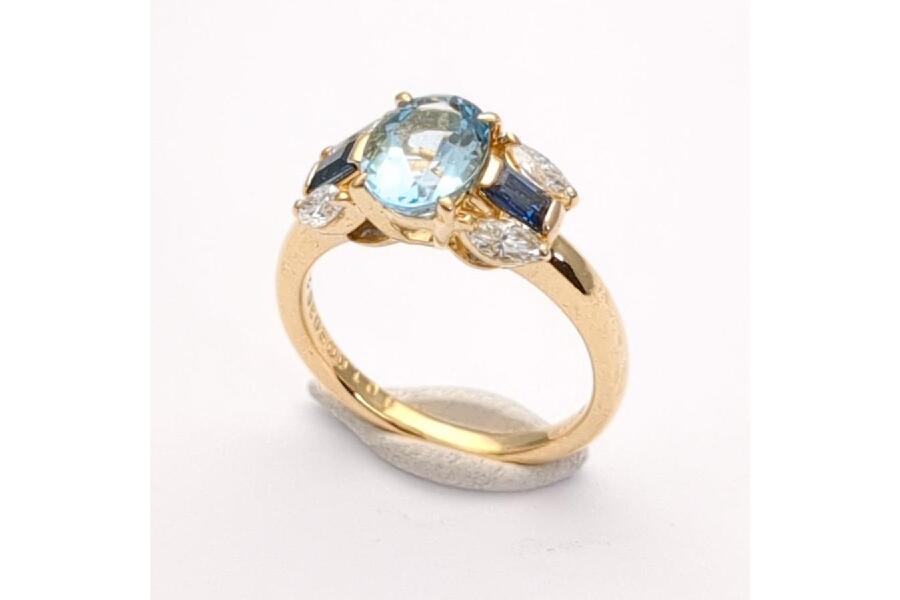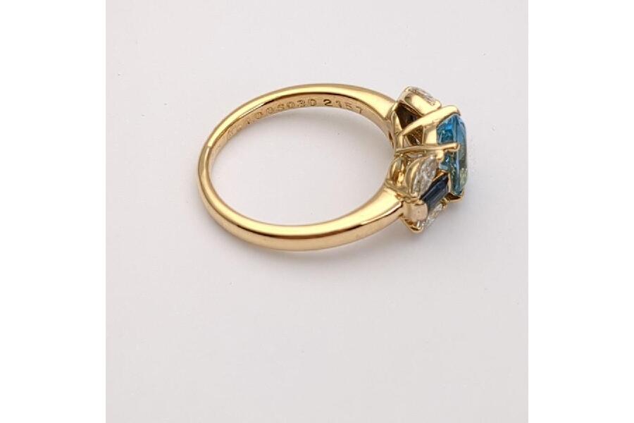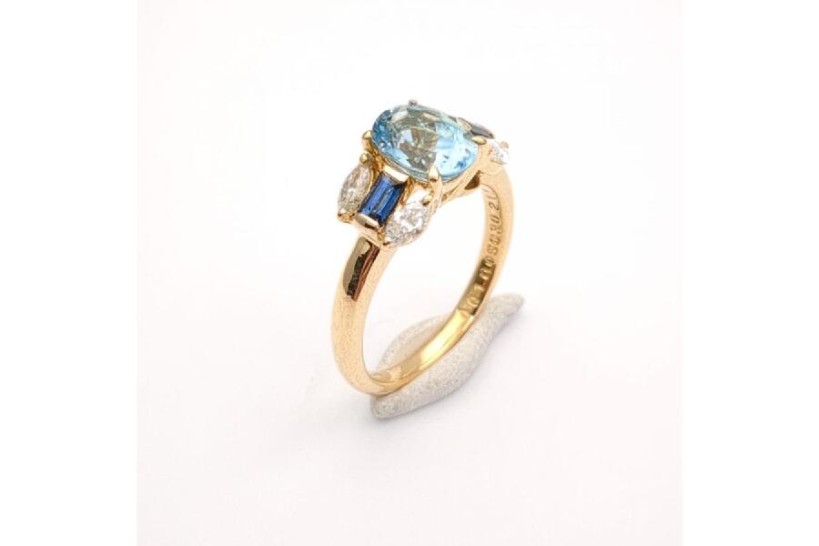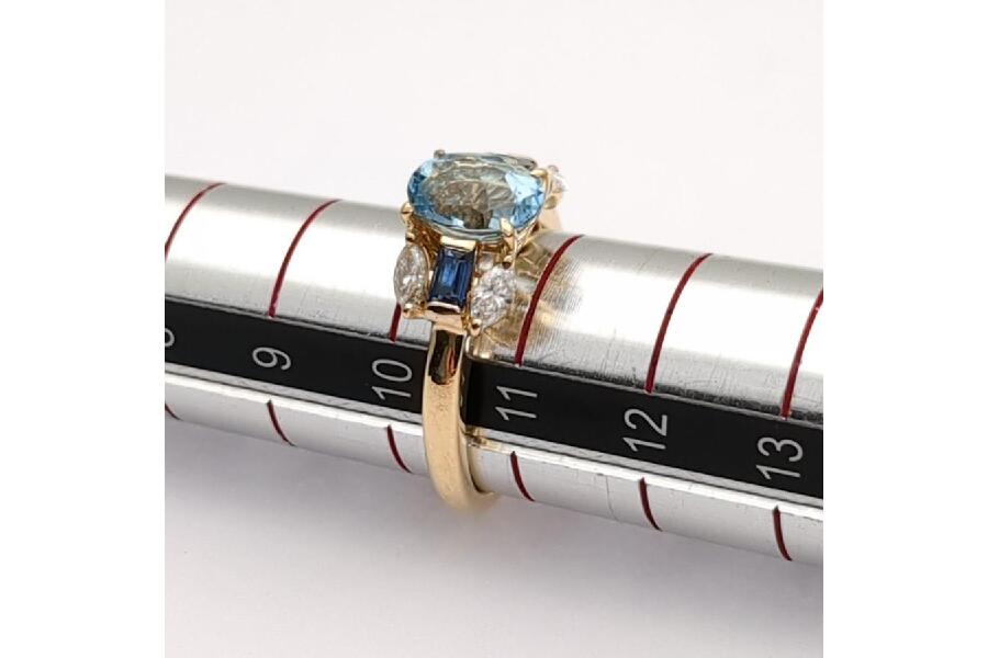 アクアマリン 1.00ct K18 4.2g SIZE #10 ゴールドリング 脇石(メレダイヤ/サファイア) FD0.36ct/S0.30ct 入荷しました♪