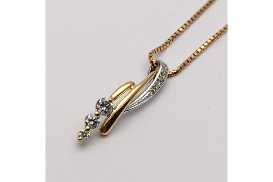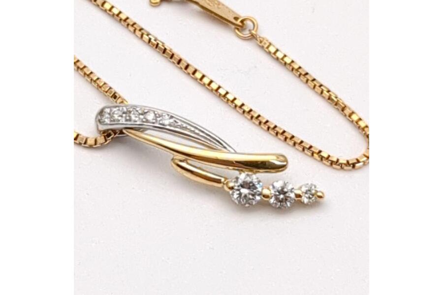 それは、K18ゴールドとPt900プラチナを組み合わせた、ドロップ型のダイヤモンドネックレスです。