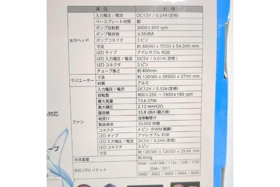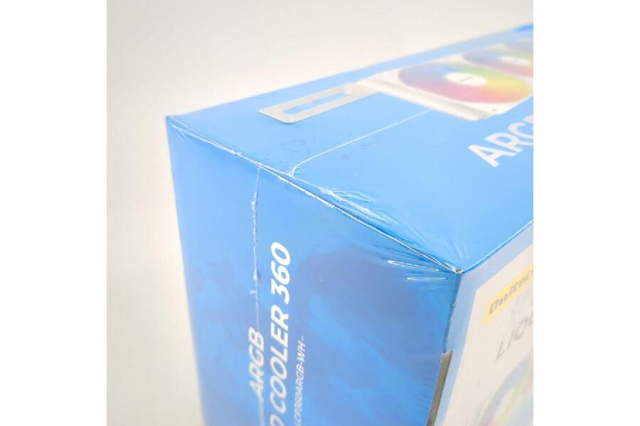 パッケージに若干の破れがあるものの、商品自体は未使用であり、高性能な簡易水冷クーラーをお探しの方には絶好のチャンスです