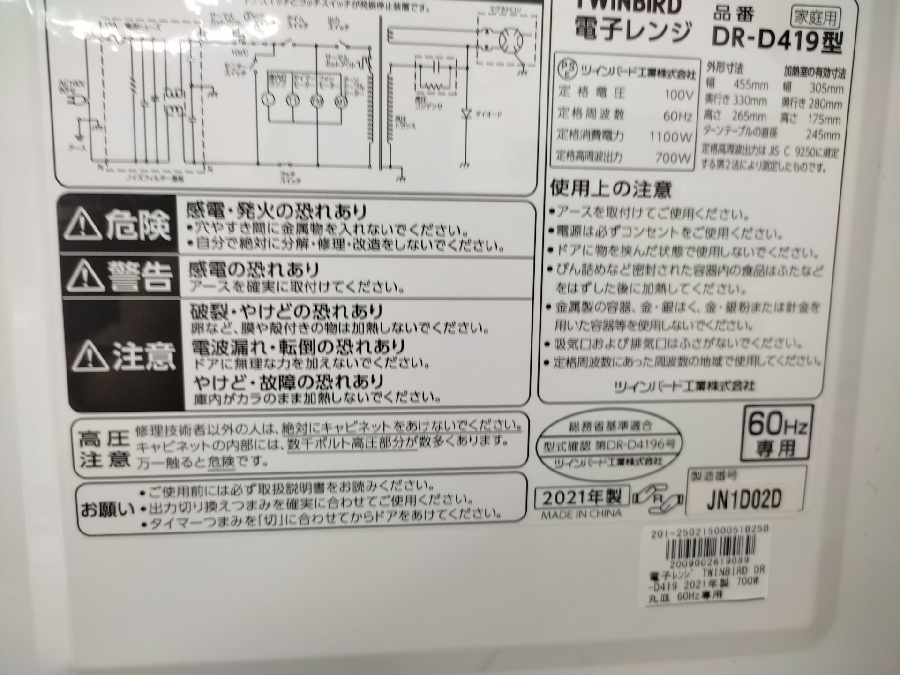 お値段だけで判断してしまうとレンジが使えないだけでなく事故につながる恐れもありますのでご注意下さいませ。