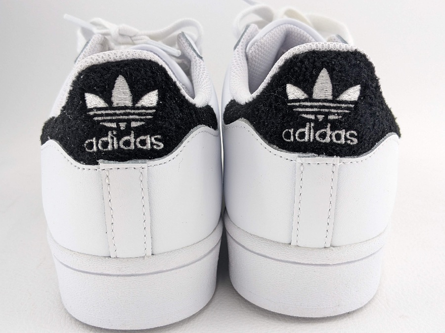 GX3775はアディダスオリジナルスの復刻版。ベースとしては通常版のスーパースターを使い、サイドの3本ラインに当時と同じフエルトを使用。また、バックのトレフォイルマークの部分にも同じフエルトを使うことでオリジナルス独自のデザインとしてアレンジしています。
