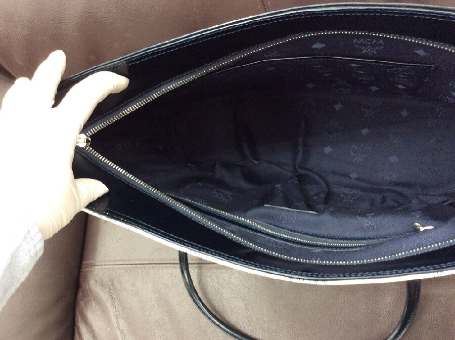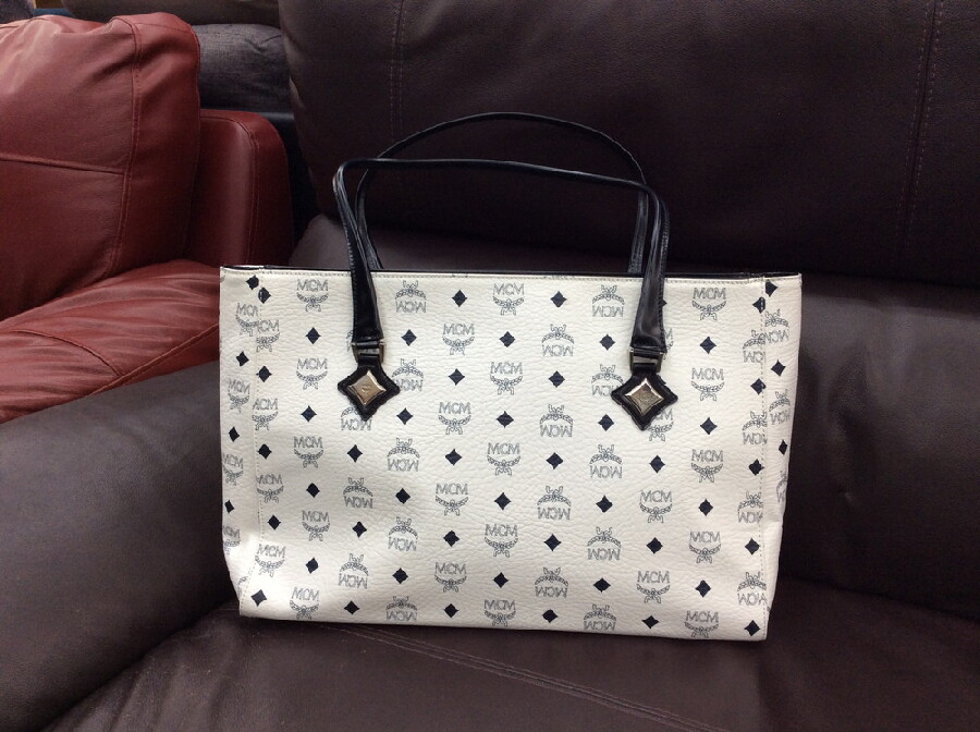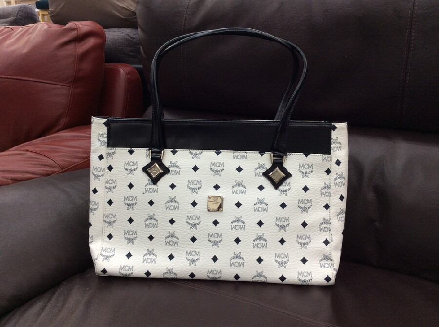 MCMのホワイトロゴのトートバッグです。(カラー:ホワイト×ブラック)