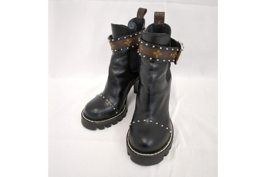 LOUIS VUITTON ルイヴィトン ブーツ レディース36(23cm) ブラック モノグラム レザー ブラック 入荷しました♪