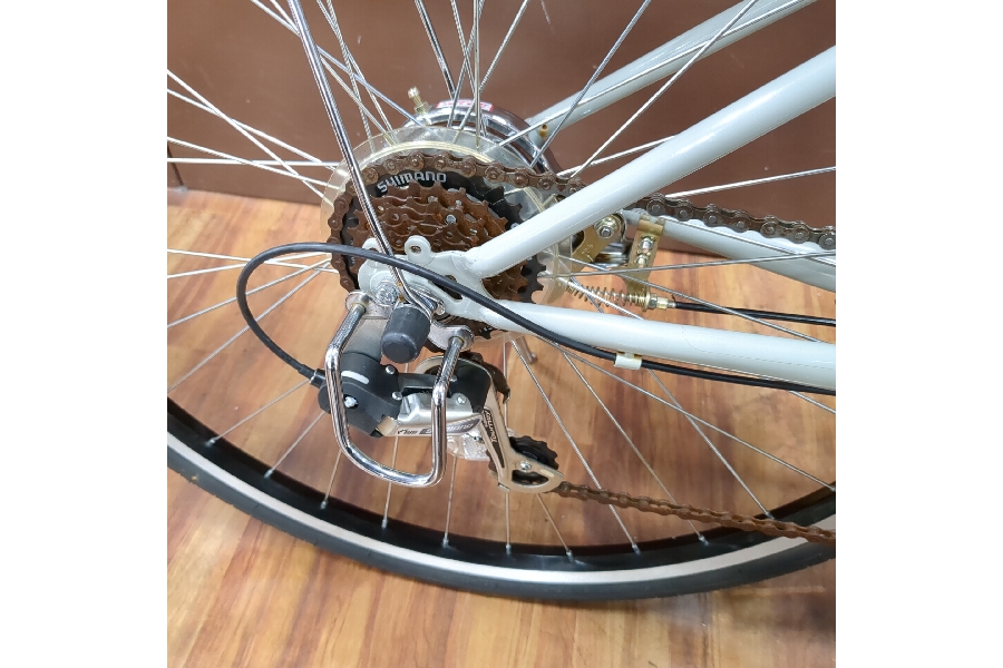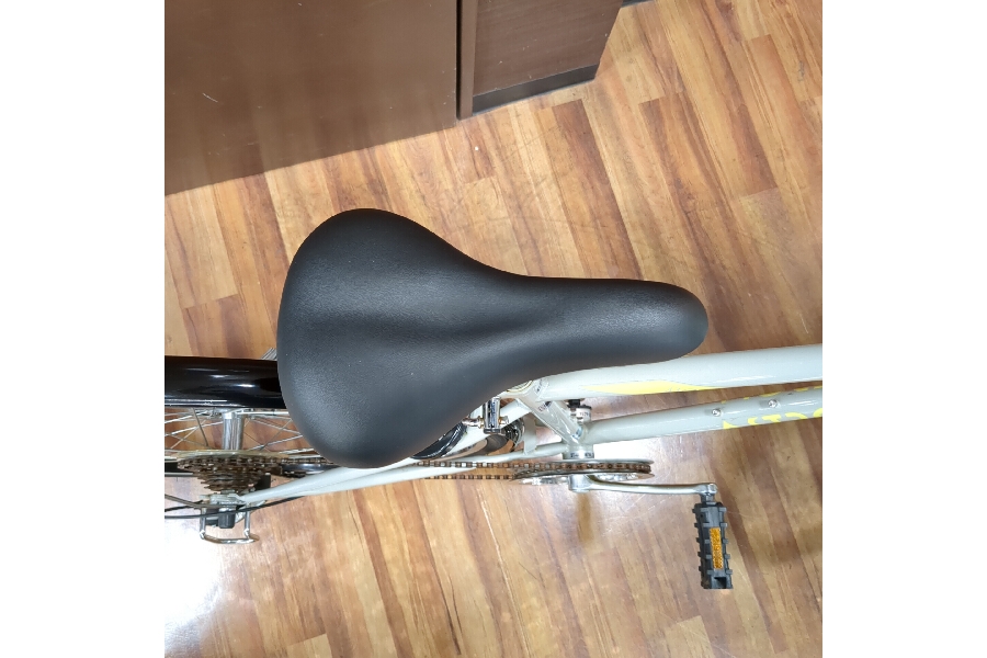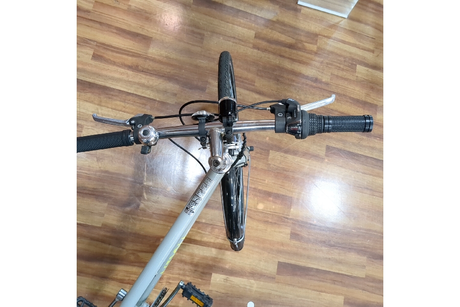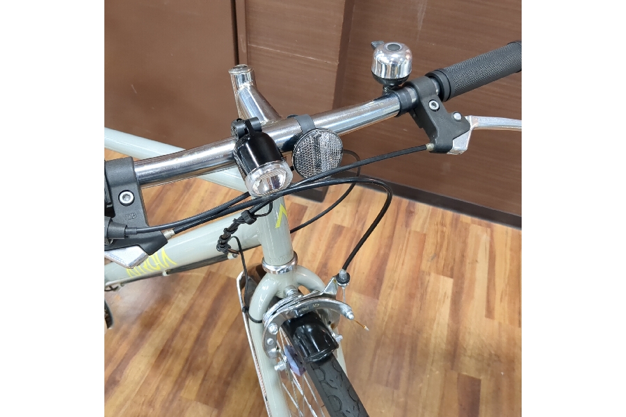 ハンドルはフラットハンドルになっており、変速機、ベル、反射板、ライトが付属しております。