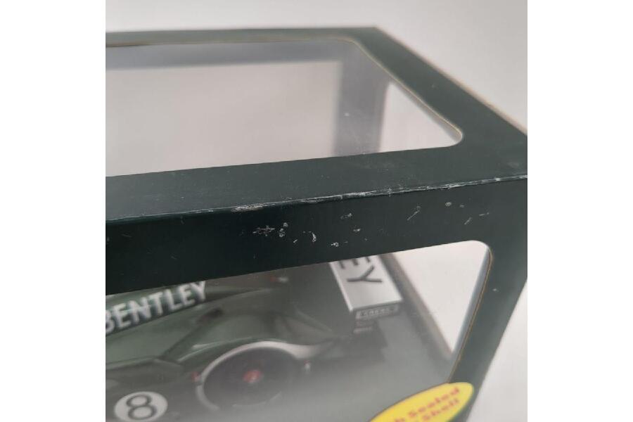 ミニカーのボディは、実車同様のグリーンカラーで塗装され、ベントレーのロゴやスポンサーのデカールも精密に再現されています