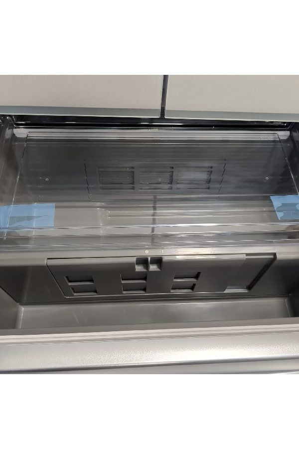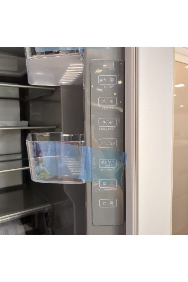 冷蔵室の扉を開けると、手前の底部分が透明になっています。