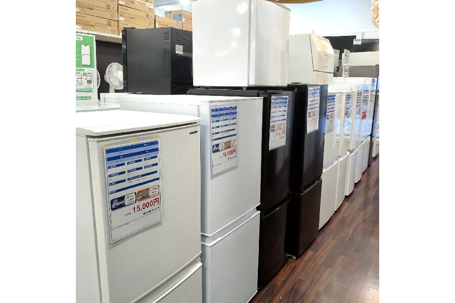 ご紹介した冷凍庫の他にも、1ドア冷蔵庫や大型冷蔵庫まで展示してあります。
