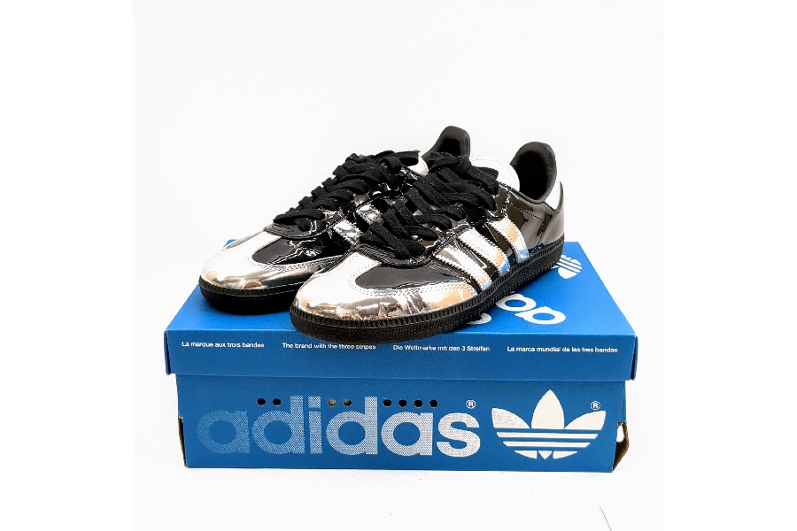 今回ご紹介するのは、今最も注目されているスニーカーの一つ、adidasの不朽の名作SAMBAです!しかも、ただのサンバではありません。エッジの効いたメタリック素材とパテントレザーを組み合わせた、特別なカスタムモデルが入荷しました♪