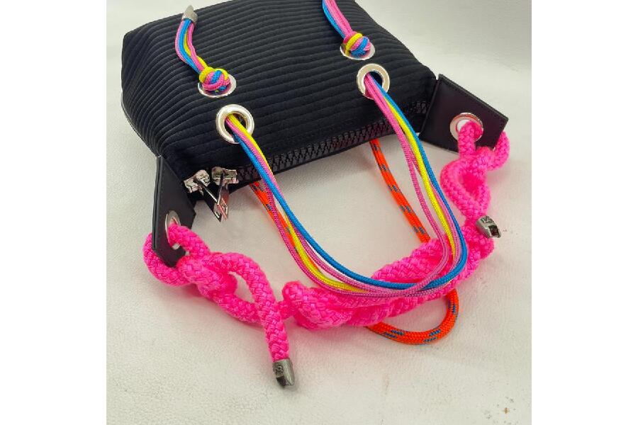 L4K3のバッグは、イタリア・イセオ湖の航海用ロープや、ウェットスーツにも使われるネオプレン素材を大胆に使用しているのが特徴です。