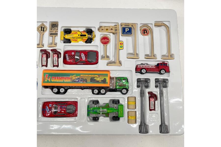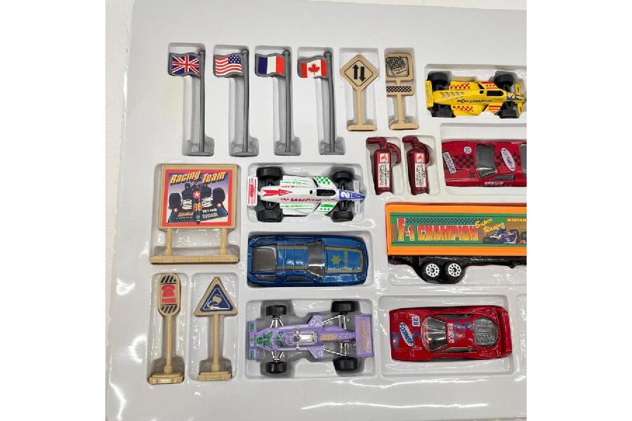 多彩なラインナップ: スポーツカー、レーシングカー、トランスポーター(積載車)といった車両だけでなく、パイロンや標識、ガソリンスタンドのパーツなど、レースシーンを再現するためのアクセサリーが豊富に含まれています。