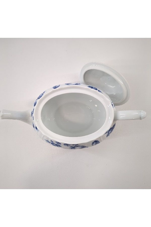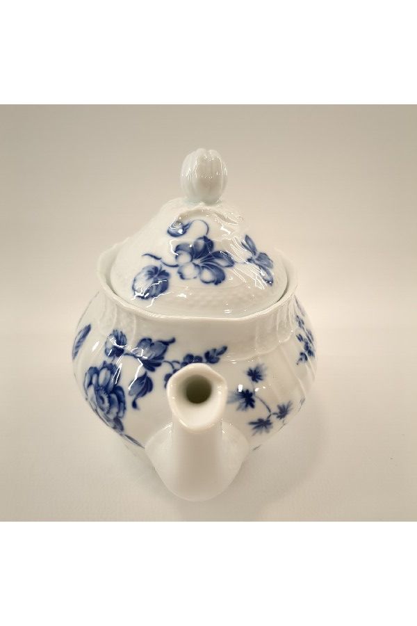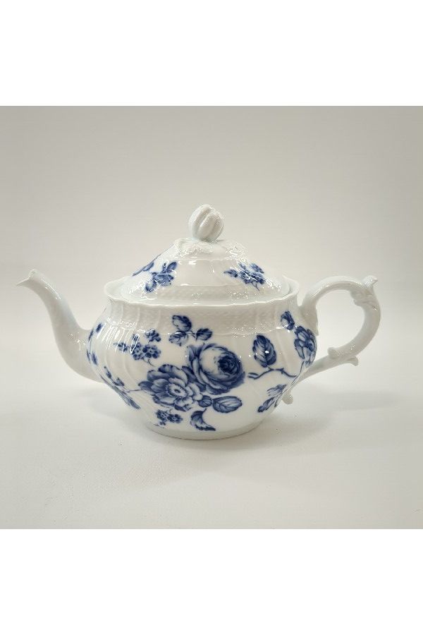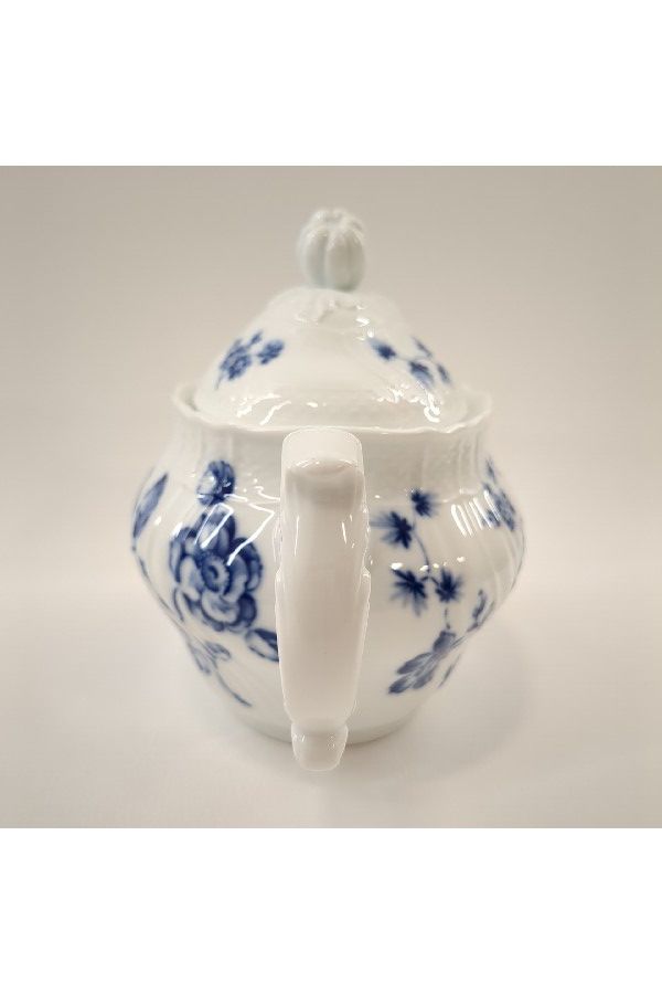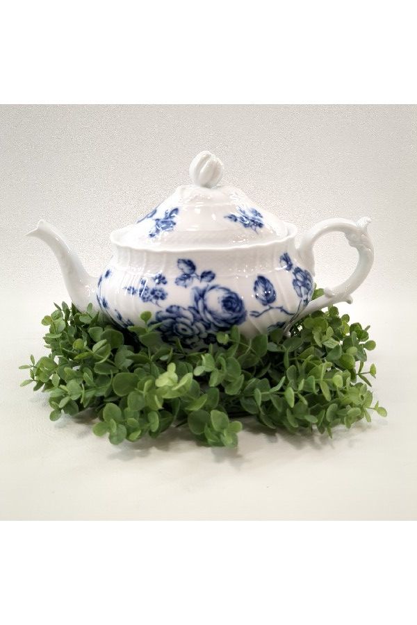 白に映える繊細さのある青で描かれている花が印象的なティーポットです!