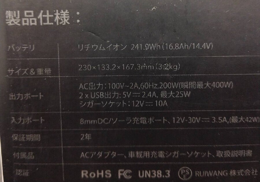 付属品:箱、ACアダプター、車載用充電シガーソケット、説明書