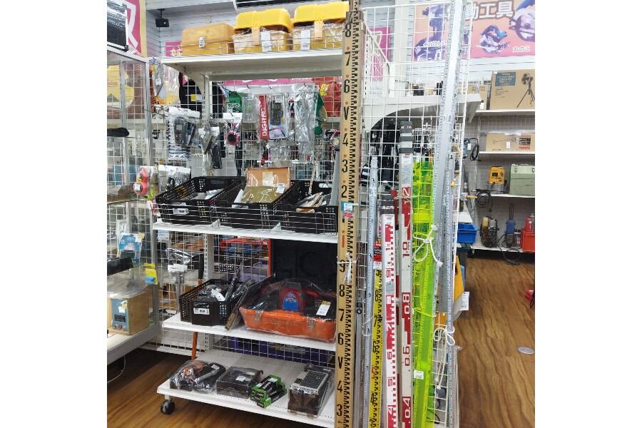 主にスタッフ、コンベックス、巻尺、水平器がおいてあります!