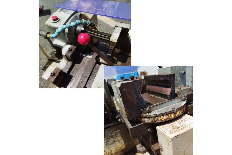 最大60°の角度えぐりが可能。切削送り・バイス締付手動。