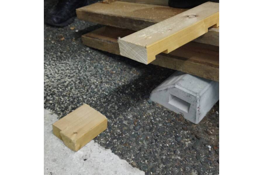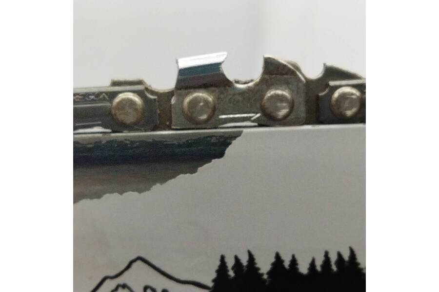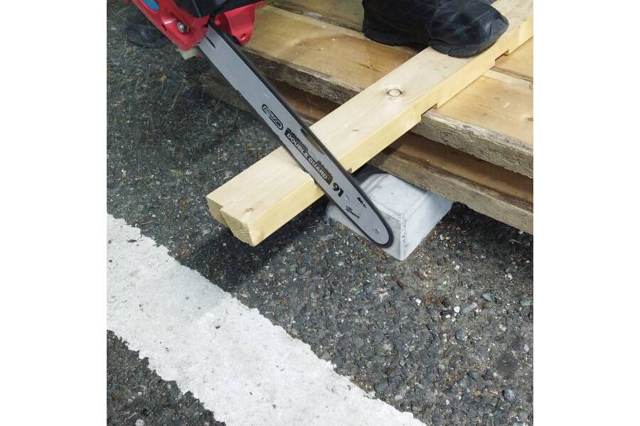 木を軽々切断する部分が自分の顔に向かって跳ね返ってくるので