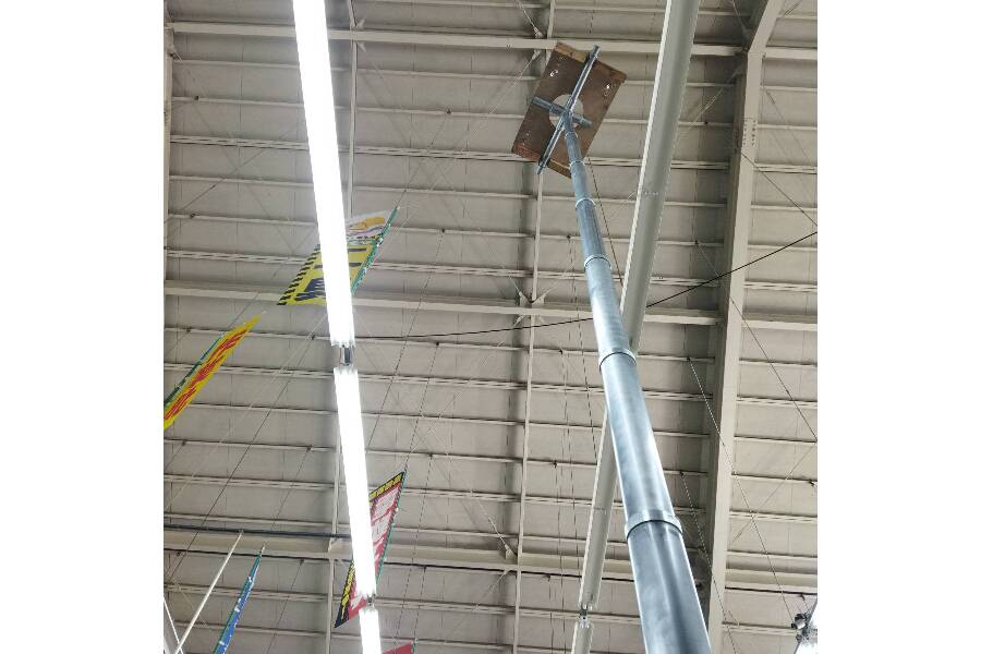 空調ダクトや天井エアコン、資材荷揚げなど様々な用途で活躍。