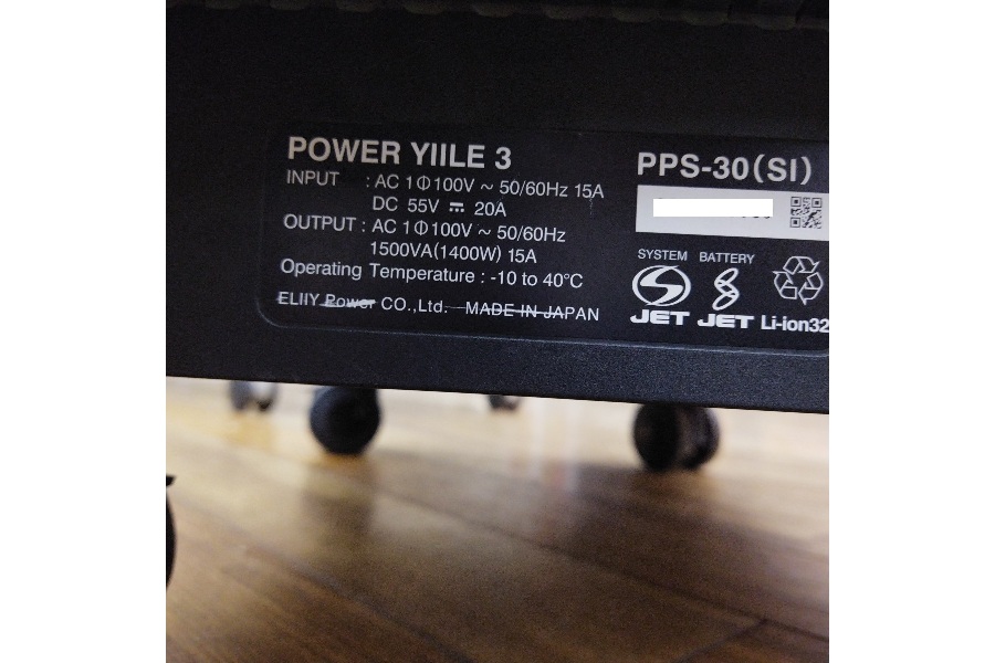 太陽光も蓄電できる【イリーパワー / ELIIY Power】 可搬型蓄電システム パワーイレ スリー(POWER YIILE3) PPS-30 入荷